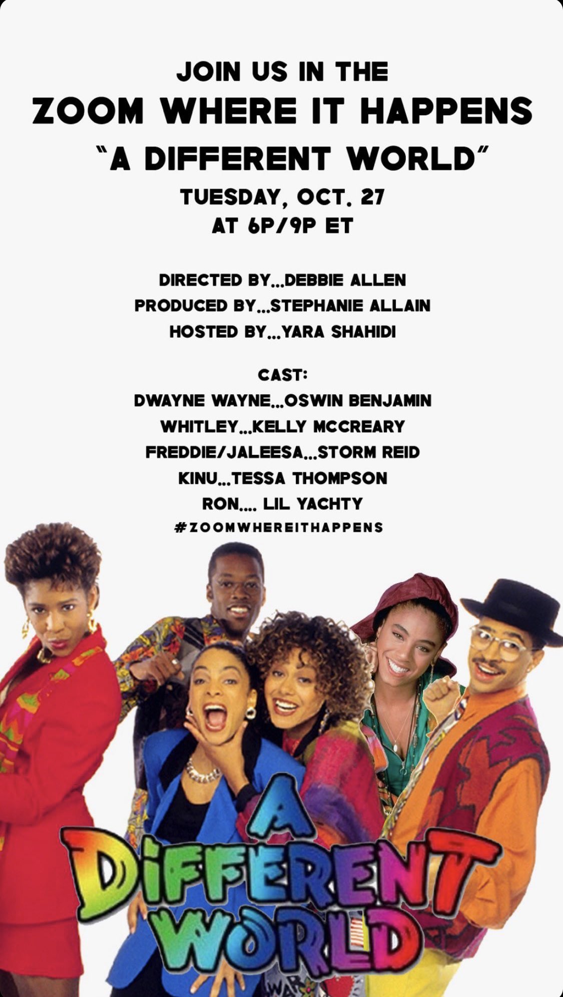 Alfre Woodard On Twitter We Re Going To A Different World In Tomorrow S Zoomwhereithappens Yarashahidi Oswinbenjamin Stormreid Kellymccreary Tessathompson X Lilyachty Sign Up Now Https T Co Apieuigmfm Https T Co Akqza5evp7 Twitter